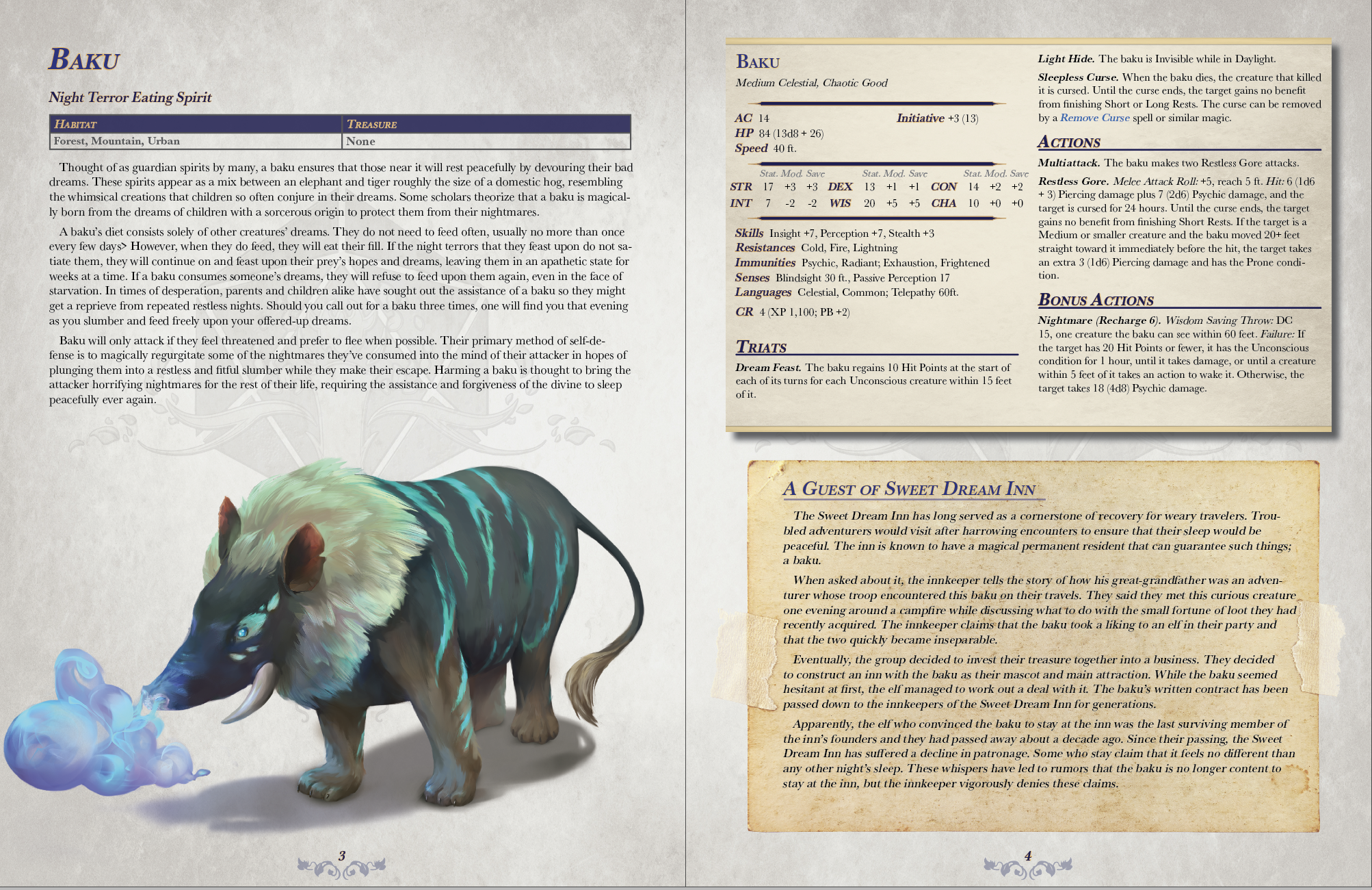 Lukallion's Ledger of Legends is a monthly digital release featuring three monsters from folklore and mythology around the world, designed for 5th Edition Dungeons & Dragons. The projects current release schedule has a new issue being released on the last day of each month. For each monster I create, I work with cultural advisors to ensure the lore is respectful of the source material while incorporating our own creative touches. Additionally, I make sure each creature fits naturally into a generic fantasy setting and include a short story featuring the monster to inspire readers to craft their own adventures.